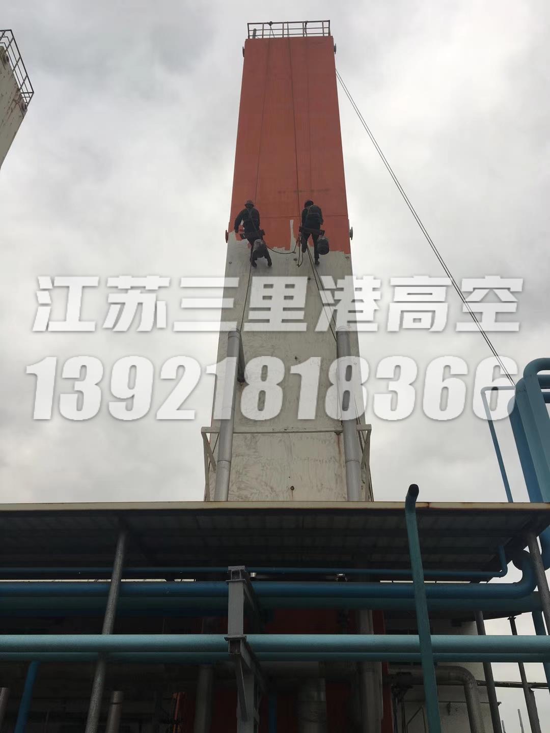 1.拆除前準備:電動吊籃施工、上梁法、吊裝藍法、提升機法與正常煙囪內壁脫硫防腐法相同,并安裝機械設備進行試裝和試運行。